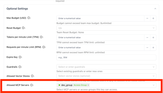 LiteLLM Proxy provides an MCP Gateway that allows you to use a fixed endpoint for all MCP tools and control MCP access by Key, Team.